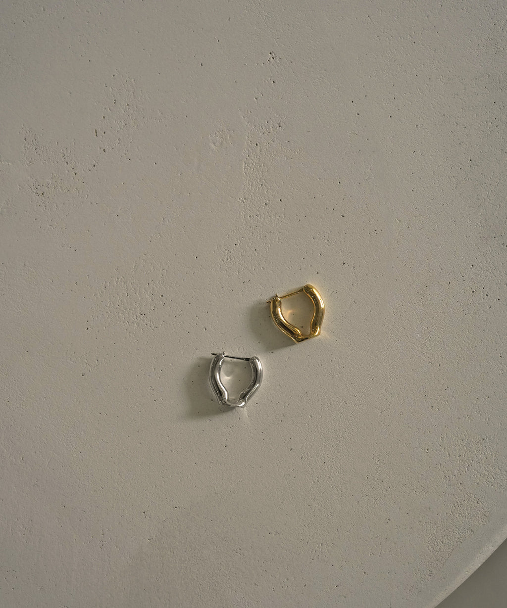 横から見た時に浮かび上がるモチーフが印象的なフープピアスです。