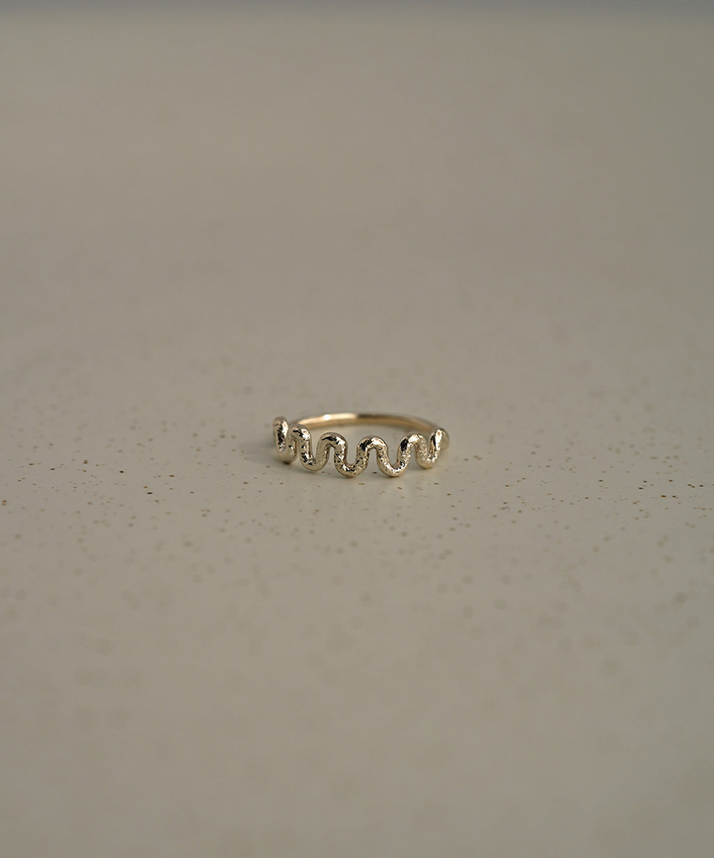 unを代表する「Frostシリーズ」から、シンプルながら細かいウェーブが印象的なリング。