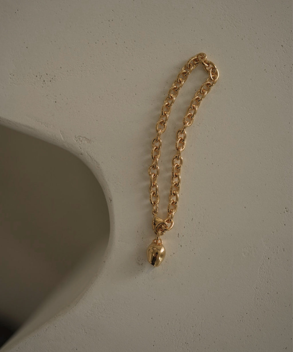 ボリュームのあるチェーンは、どこの位置でも留め具を調整することができるため、お好みのサイズ感でお使いいただけます。