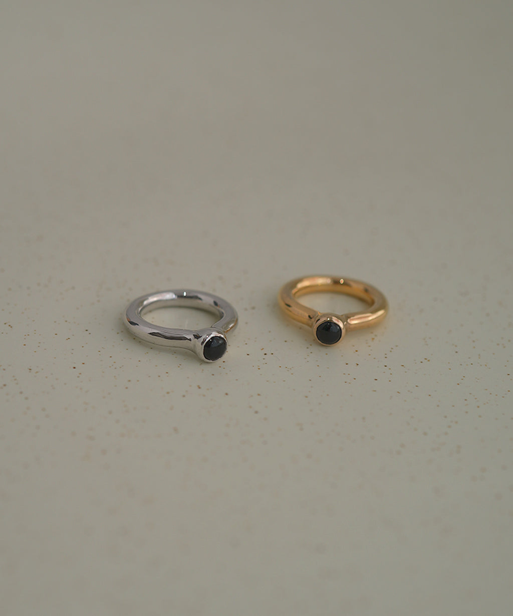 内側の有機的なデザインにより縦に伸びたリング。その先にはオニキスをあしらった印象的なデザインで、重ね付けにもおすすめです。