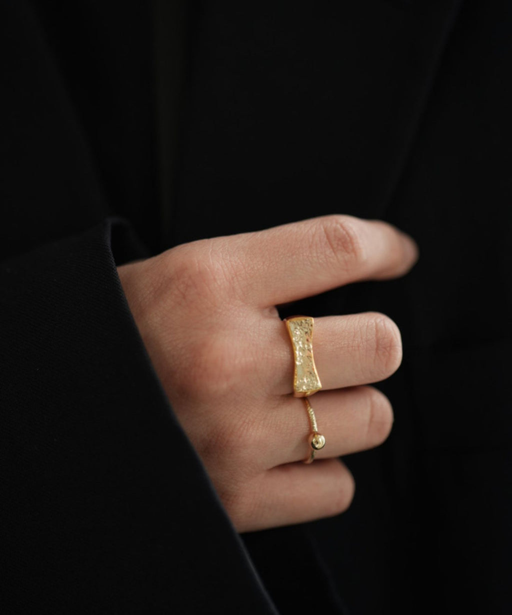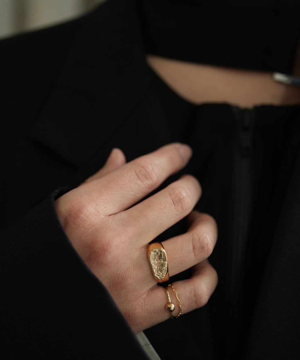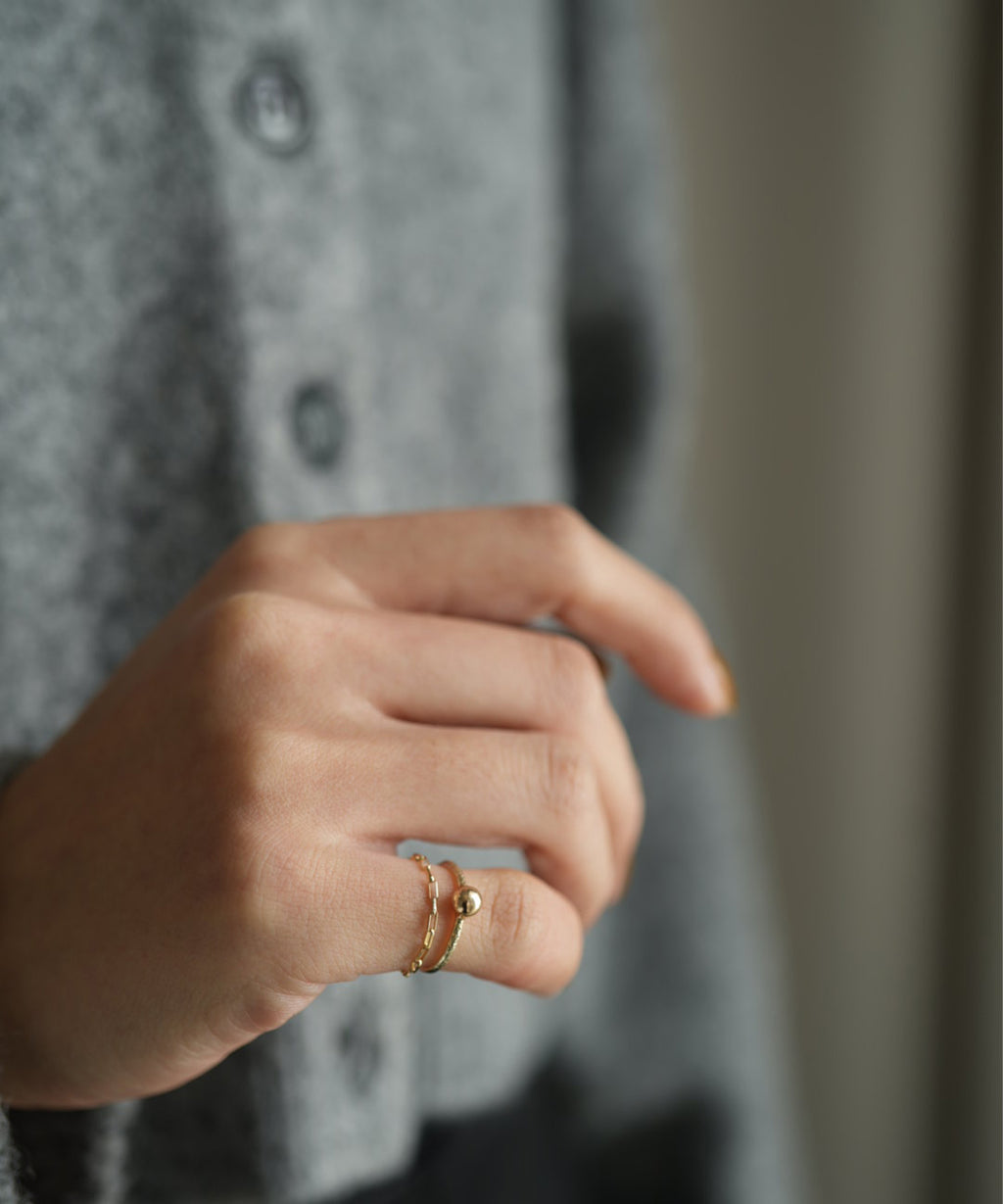 unを代表するFrostシリーズより、球体がトータルバランスのアクセントになるリング。