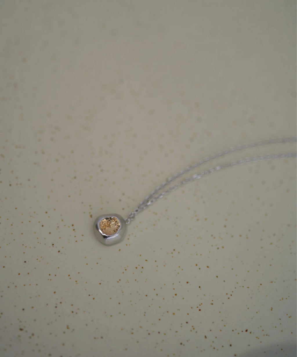 BrillerシリーズよりPebble Ringの造形を再構築し、ネックレスとして新たな解釈を加えました。